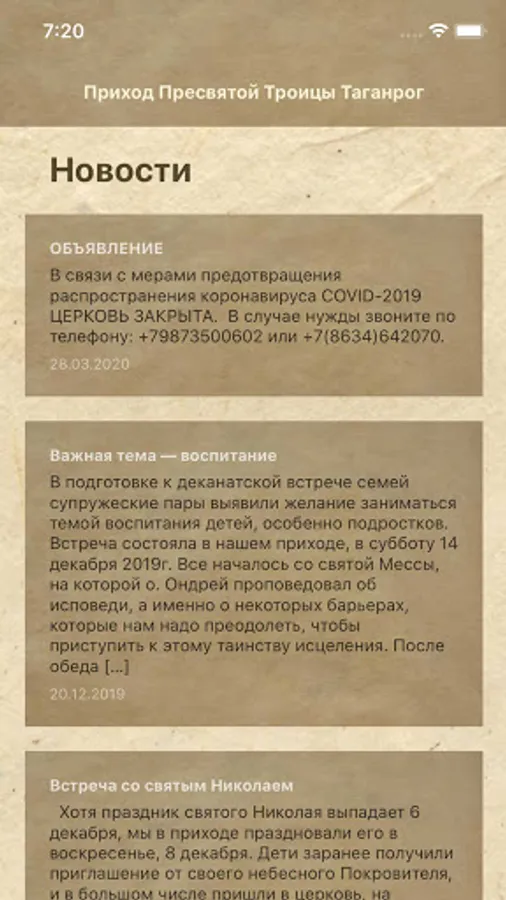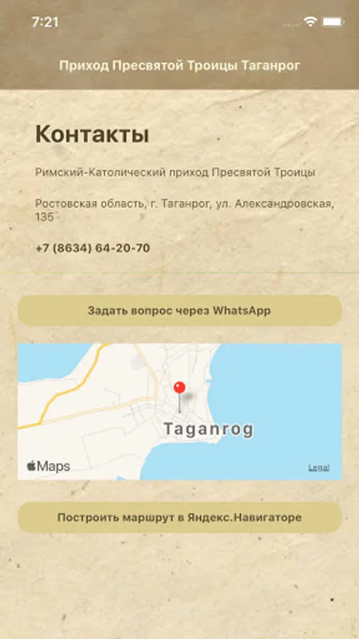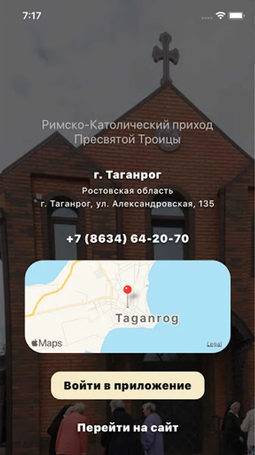 The official application of the local religious organization, the parish of the Holy Trinity of the Roman Catholic Church in Taganrog - contacts, schedules, holidays, services.