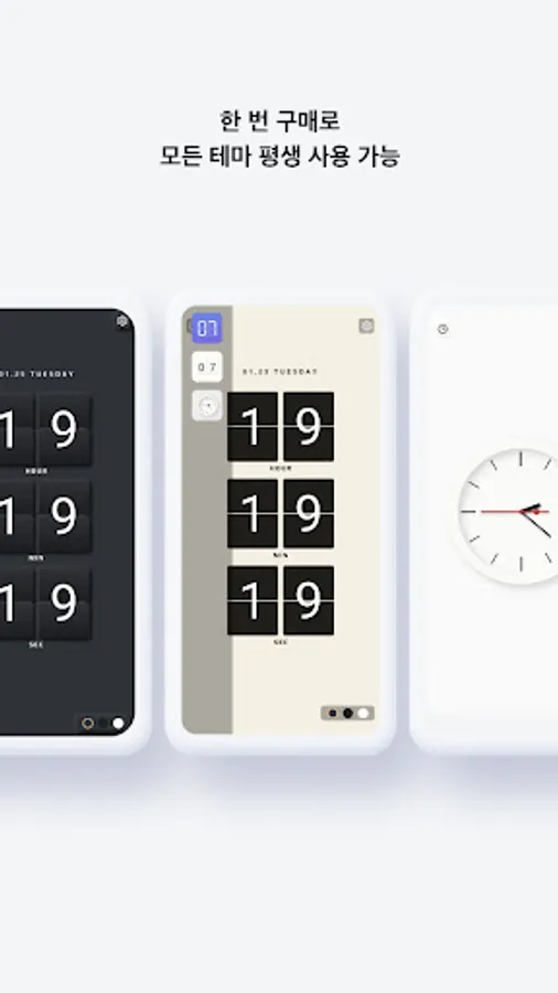 - Offers digital, flip and analog clock themes. More will be added in the future.