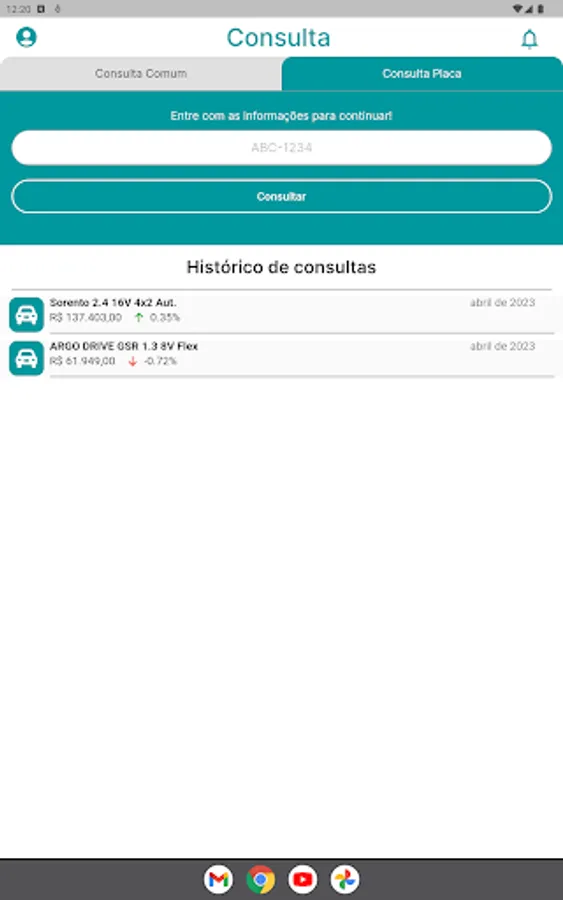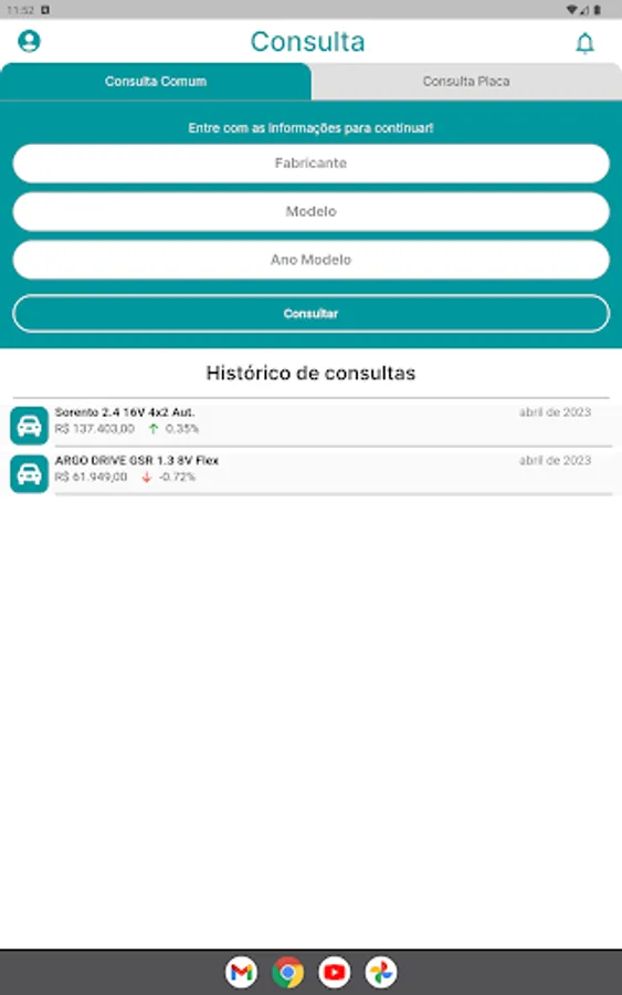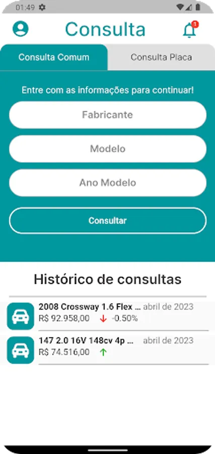 All queries remain in the application's history, so the user can query the vehicle again without having to enter the data again