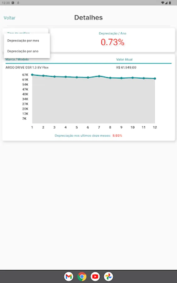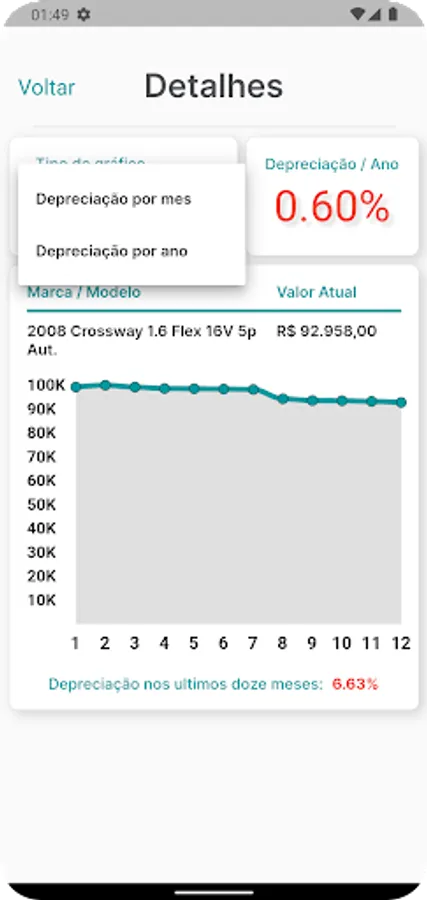 NEW FEATURE: The app now offers depreciation charts by month and by year.