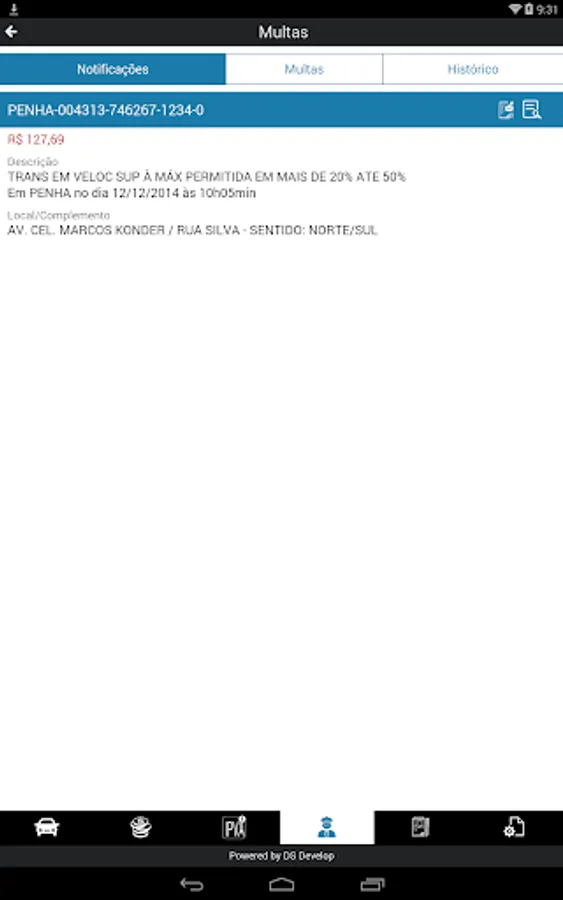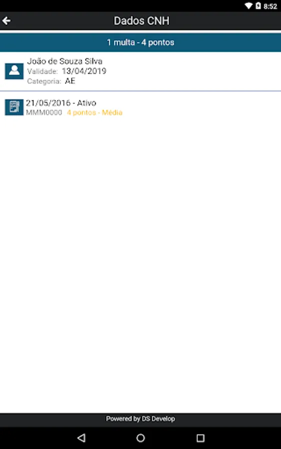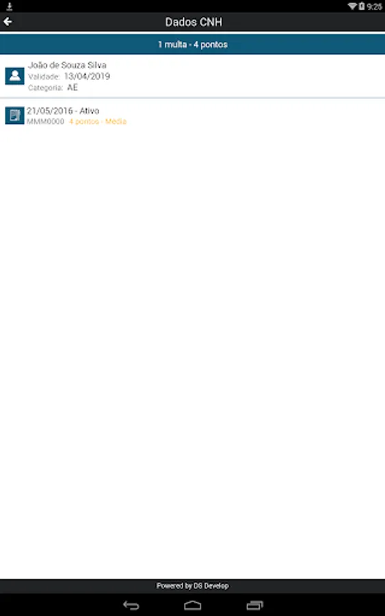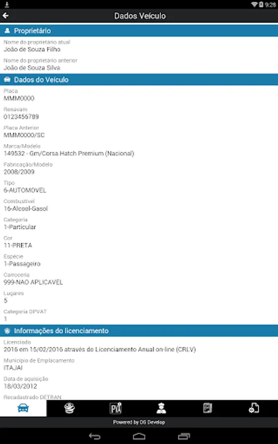 The application keeps the queries made in the history, making it very simple to consult a new vehicle or driver's license already consulted.