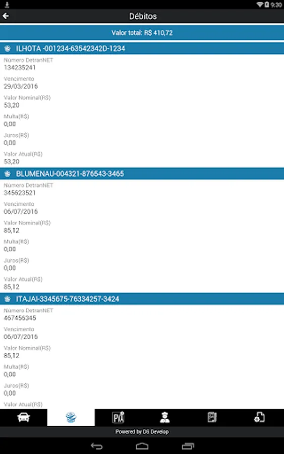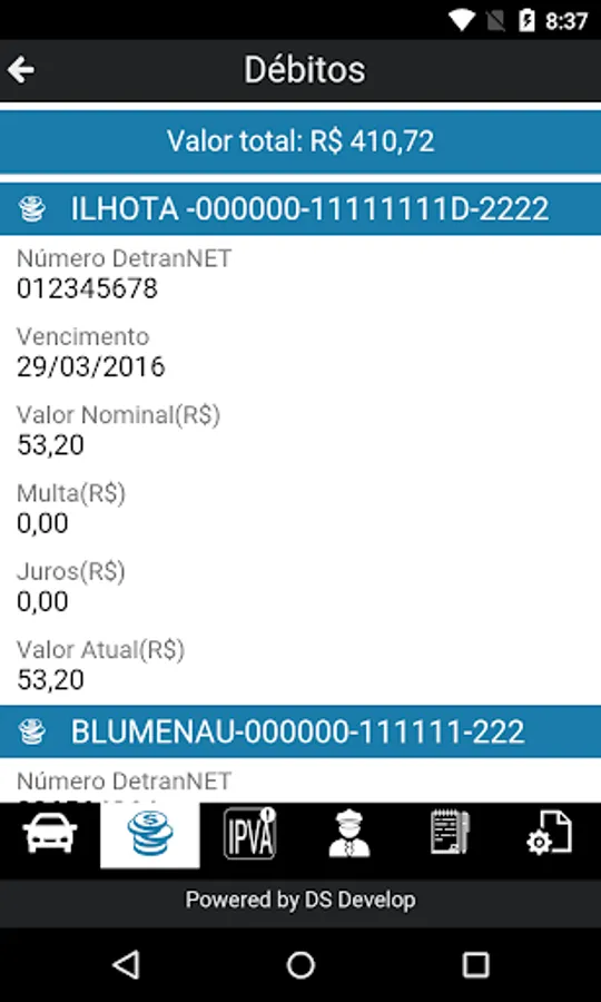 NOTE: The displayed data comes from the Detran website, so it is necessary that the Detran service is operational.