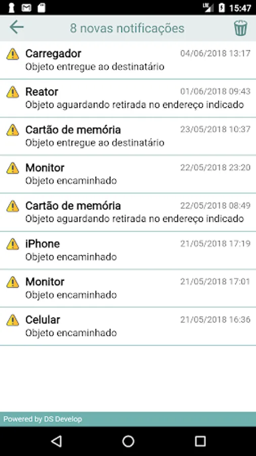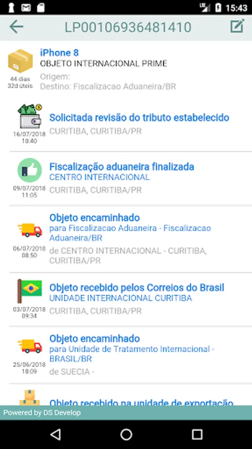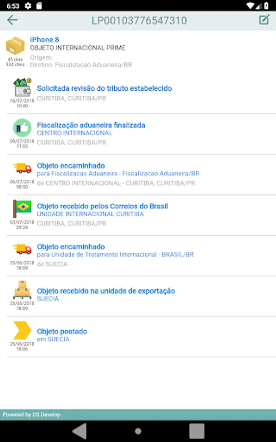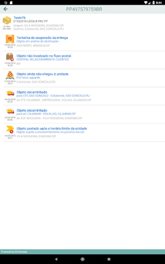The app Rastreio Fácil, from the DS Develop company, has no link with the Brazilian Post and Telegraph Company, we just show in a simple and intuitive way the information that is made available to the public by this company.