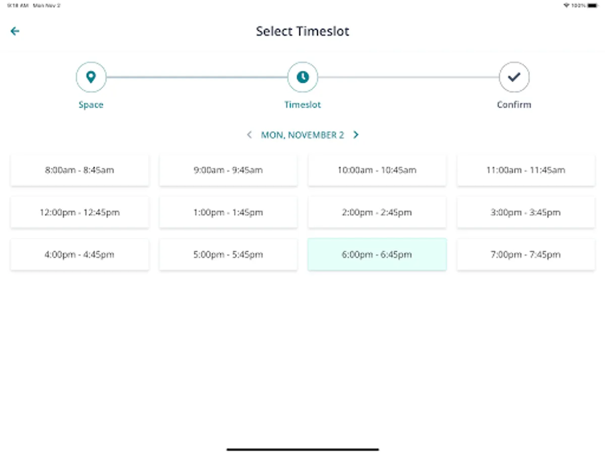 Users can see the space/equipment availability, book their preferred timeslot, view and cancel existing reservations, and receive push notifications about their bookings.