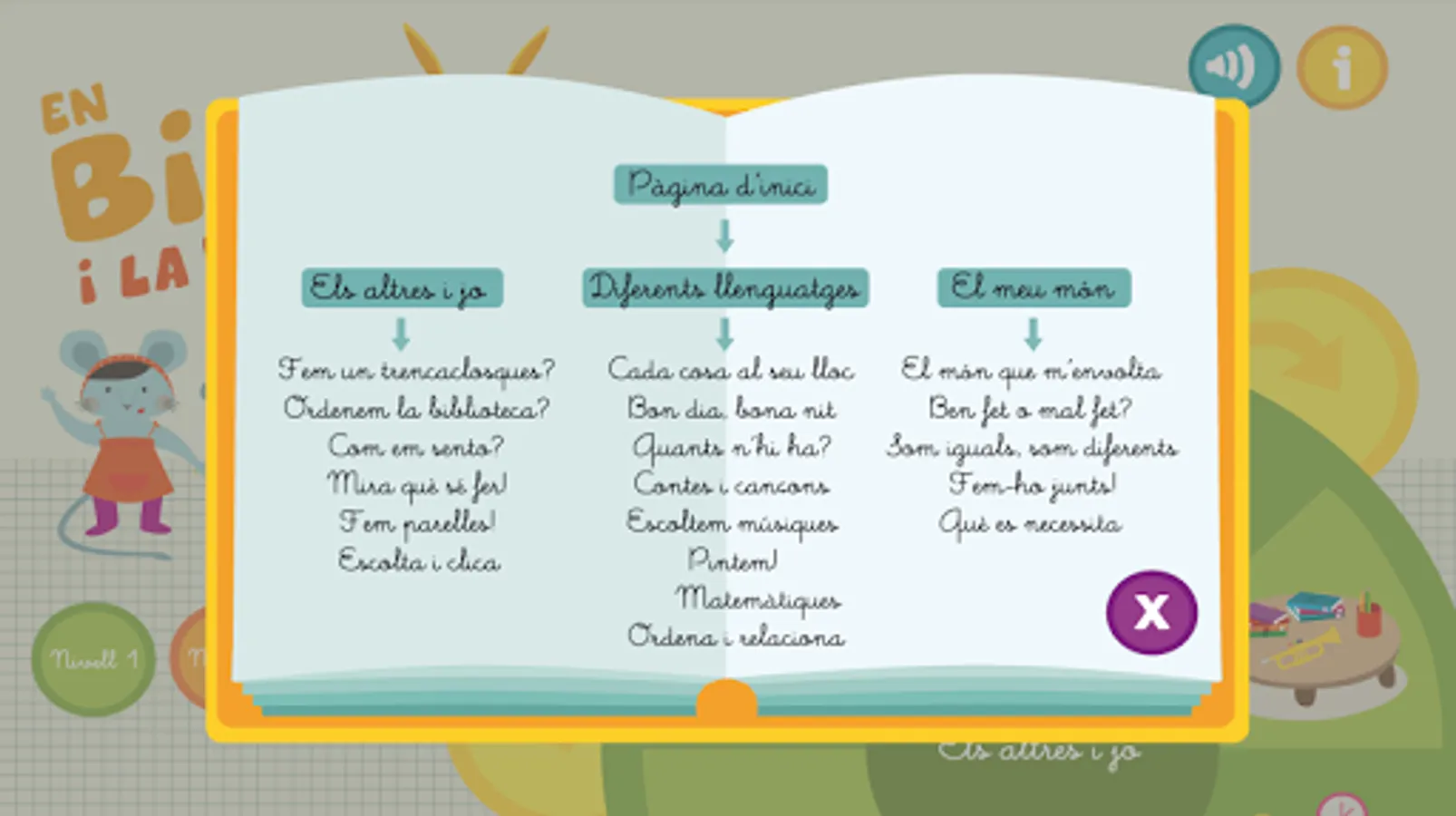 With games and activities in Biel (a rabbit) and Teak (a rat), will order the child, do puzzles, paint, will exercise visual memory, sing, listen to stories, compare, reflect on ethical issues everyday life, will, observe the world around ...