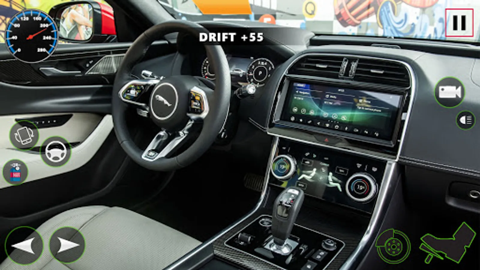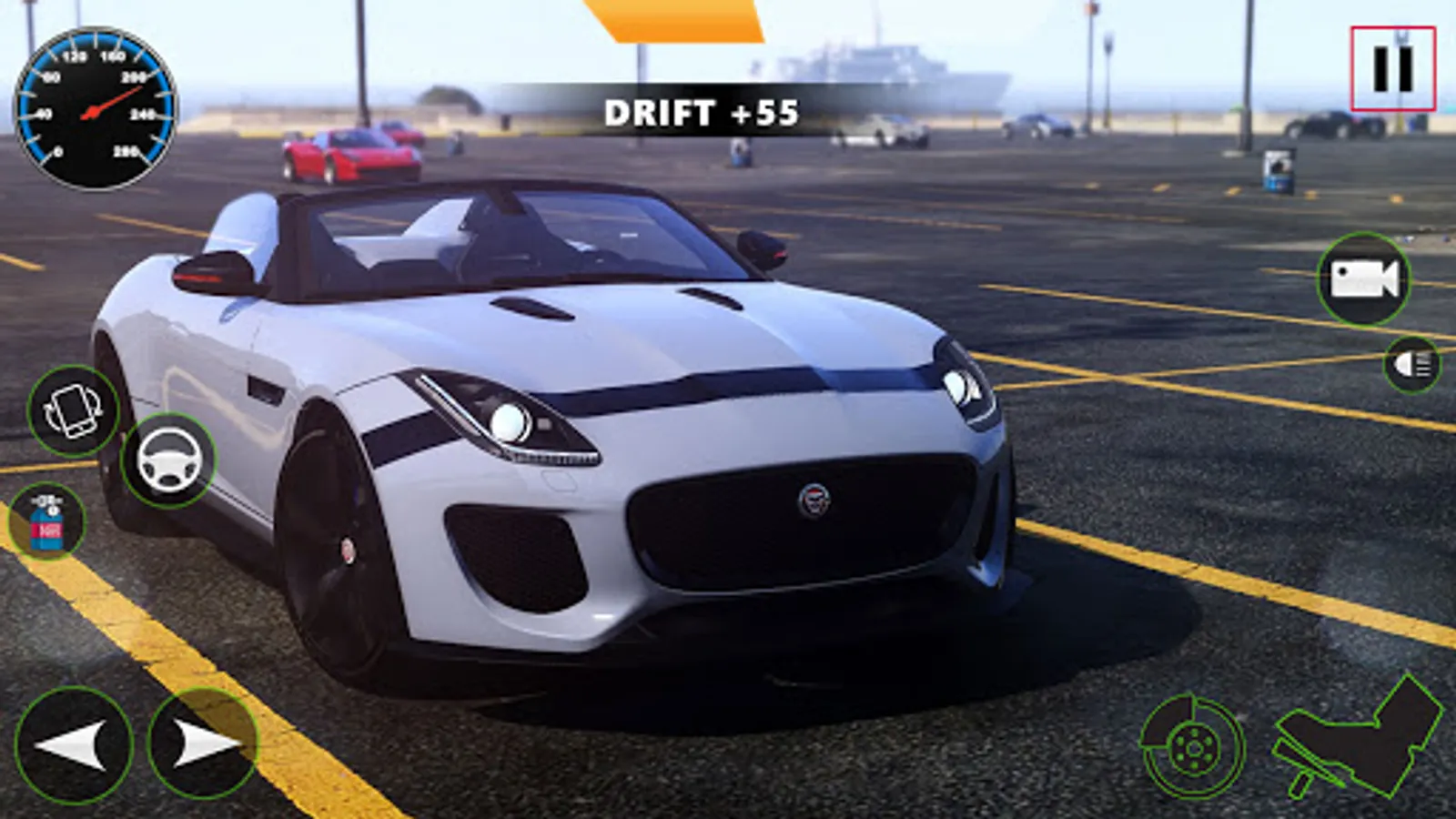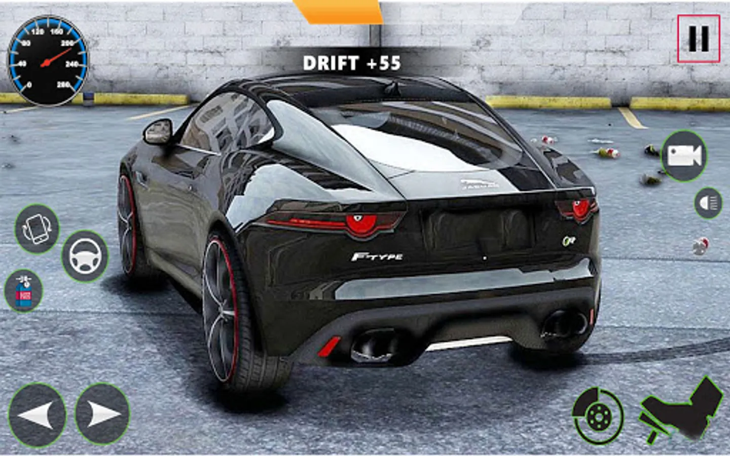Drift Car Simulator 2021 : Jaguar City Drive sim have four different modes for all the simulation experiences in one game. If you want to drift your supercar Jaguar in curvy roads of mountains, extreme burnout at city busy highways, or you want to do extreme drifting in a closed environment full of hurdles, containers, bumpers, and speedbumps, We have settled one as different modes. Another exciting Mode of Extreme Car Driving Simulator 2021 is that you can perform extreme Parking missions and park your cars via parking lots and open-world challenge. The Third Mode in Super Car driving of Jaguar is that you can go to a trafficless city and wander around like a free supercar speed testing mission achieving the high speeds and turns with the maximum torque for stability and Centre of mass balancing. The last mode of this game is extreme drifting while on missions to chase the police cars and other supercars. The com of this car shifted as in realistic cars happens for stability. The car controls seem to be very realistic and stable so you gotta enjoy the drive well.
