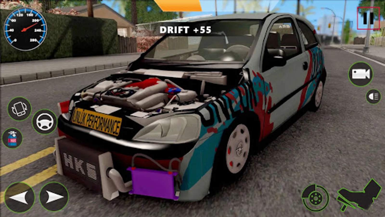 Super Car Simulator 2021: Vauxhall Corsa Drift & drive have four different modes for all the simulation experiences in one game. If you want to drift your supercar Vauxhall Corsa in curvy roads of mountains, extreme burnout at city busy highways, or you want to do extreme drifting in a closed environment full of hurdles, containers, bumpers, and speedbumps, We have settled one as different modes. Another exciting Mode of Extreme Car Driving Simulator 2021 is that you can perform extreme Parking missions and park your cars via parking lots and open-world challenge. The Third Mode in Super Car driving of Vauxhall Corsa is that you can go to a trafficless city and wander around like a free supercar speed testing mission achieving the high speeds and turns with the maximum torque for stability and Centre of mass balancing. The last mode of this game is extreme drifting while on missions to chase the police cars and other supercars. The com of this car shifted as in realistic cars happens for stability. The car controls seem to be very realistic and stable so you gotta enjoy the drive well.