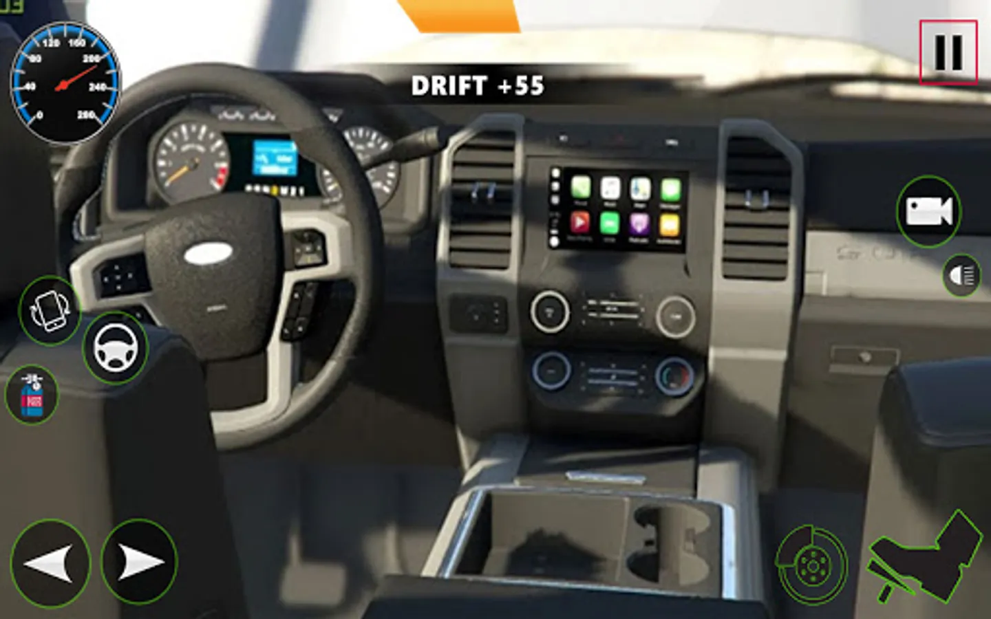 City Car Simulator 2021 : Ford 350 Drift & Drive have four different modes for all the simulation experiences in one game. If you want to drift your supercar Ford 350 in curvy roads of mountains, extreme burnout at city busy highways, or you want to do extreme drifting in a closed environment full of hurdles, containers, bumpers, and speedbumps, We have settled one as different modes. Another exciting Mode of Extreme Car Driving Simulator 2021 is that you can perform extreme Parking missions and park your cars via parking lots and open-world challenge. The Third Mode in Super Car driving of Ford 350 is that you can go to a trafficless city and wander around like a free supercar speed testing mission achieving the high speeds and turns with the maximum torque for stability and Centre of mass balancing. The last mode of this game is extreme drifting while on missions to chase the police cars and other supercars. The com of this car shifted as in realistic cars happens for stability. The car controls seem to be very realistic and stable so you gotta enjoy the drive well.