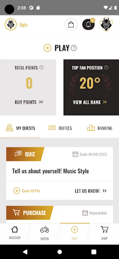 Express your fandom in the G2 App shop. Use points to order your favorite G2 Esports products. Top fans can unlock exclusive limited edition merch.