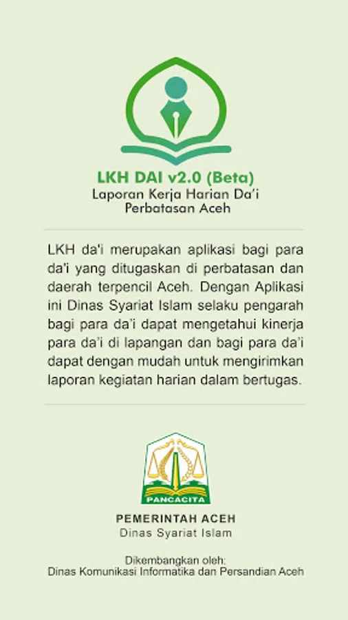 The application is used for reporting Dai's daily work in the Aceh region's borders carried out by the Aceh Syariat Islamic Office