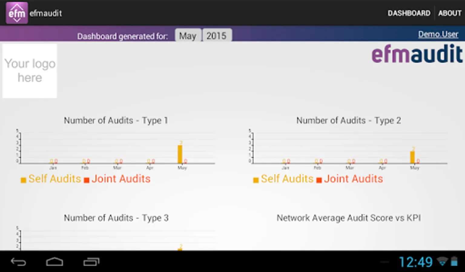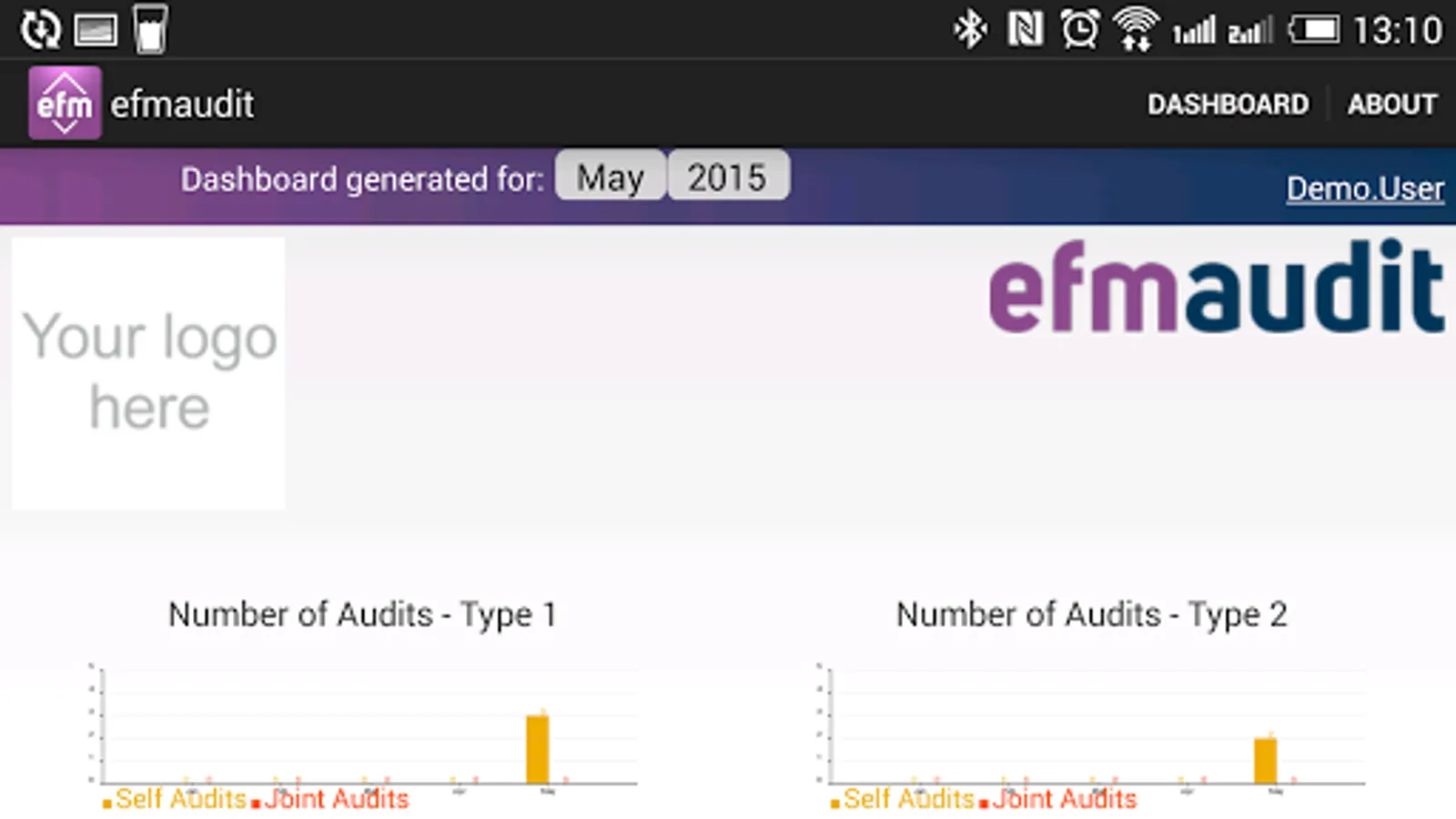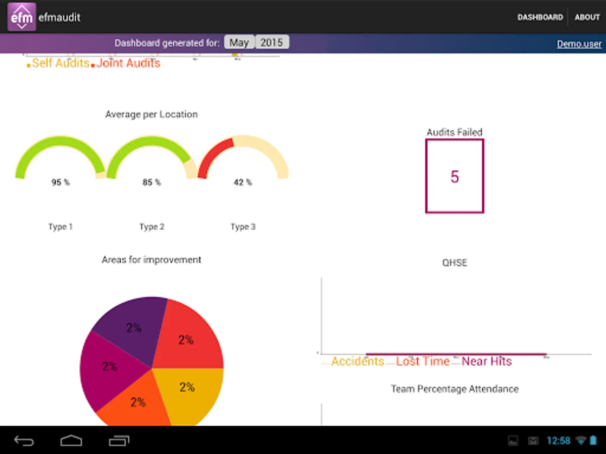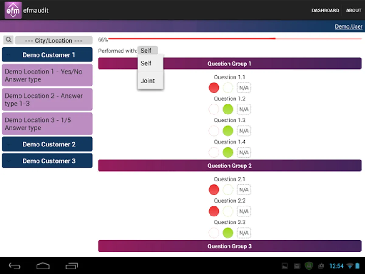 The application allows customer audits to be carried out 24/7. EfmAudit has different levels of access, allowing full task control and overview. The powerful report engine and its custom visualization is a great tool for users and its customers. The dashboard is designed to reflect the current KPI levels and analyse the data.
