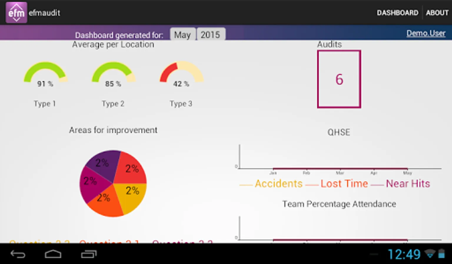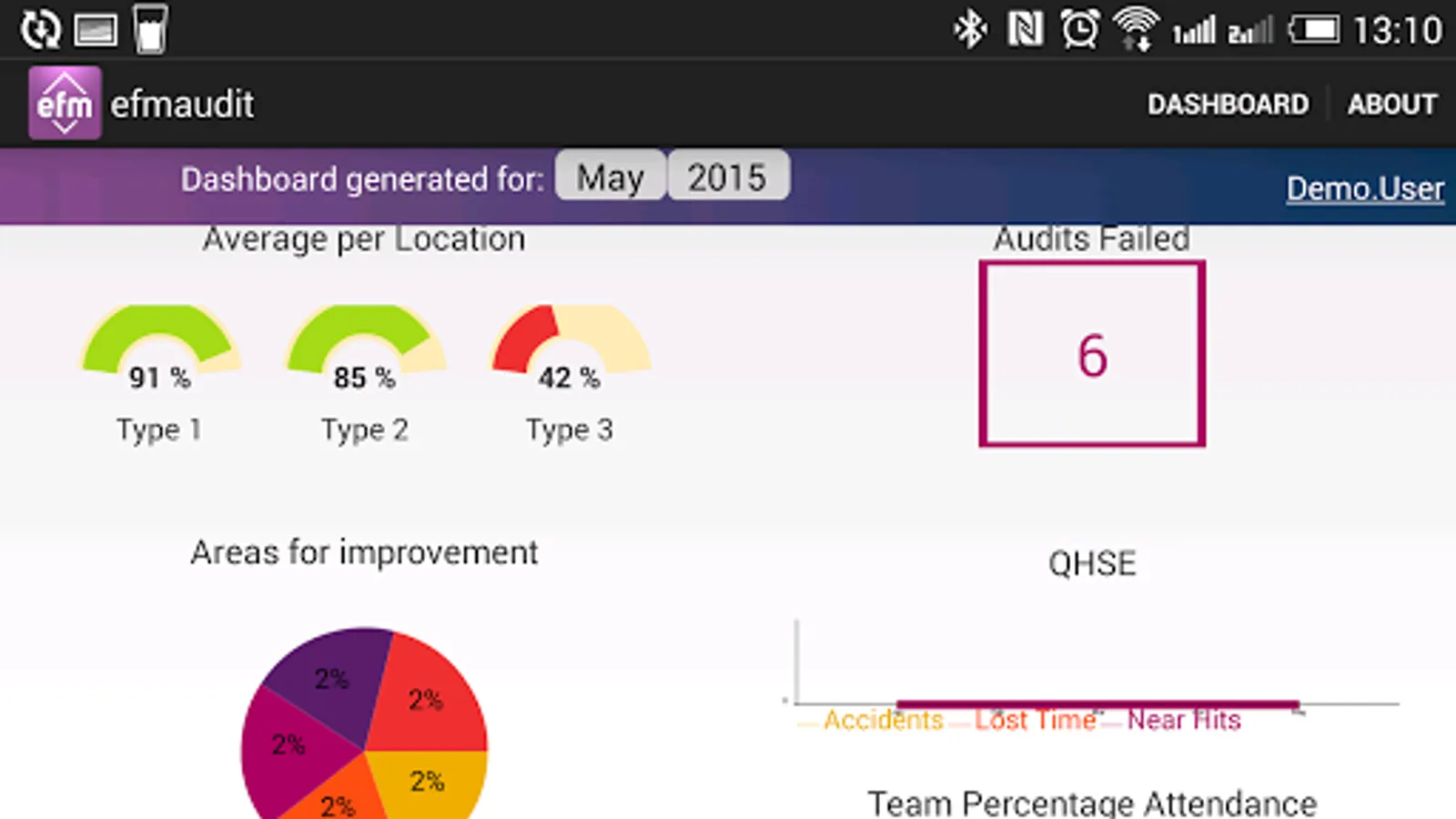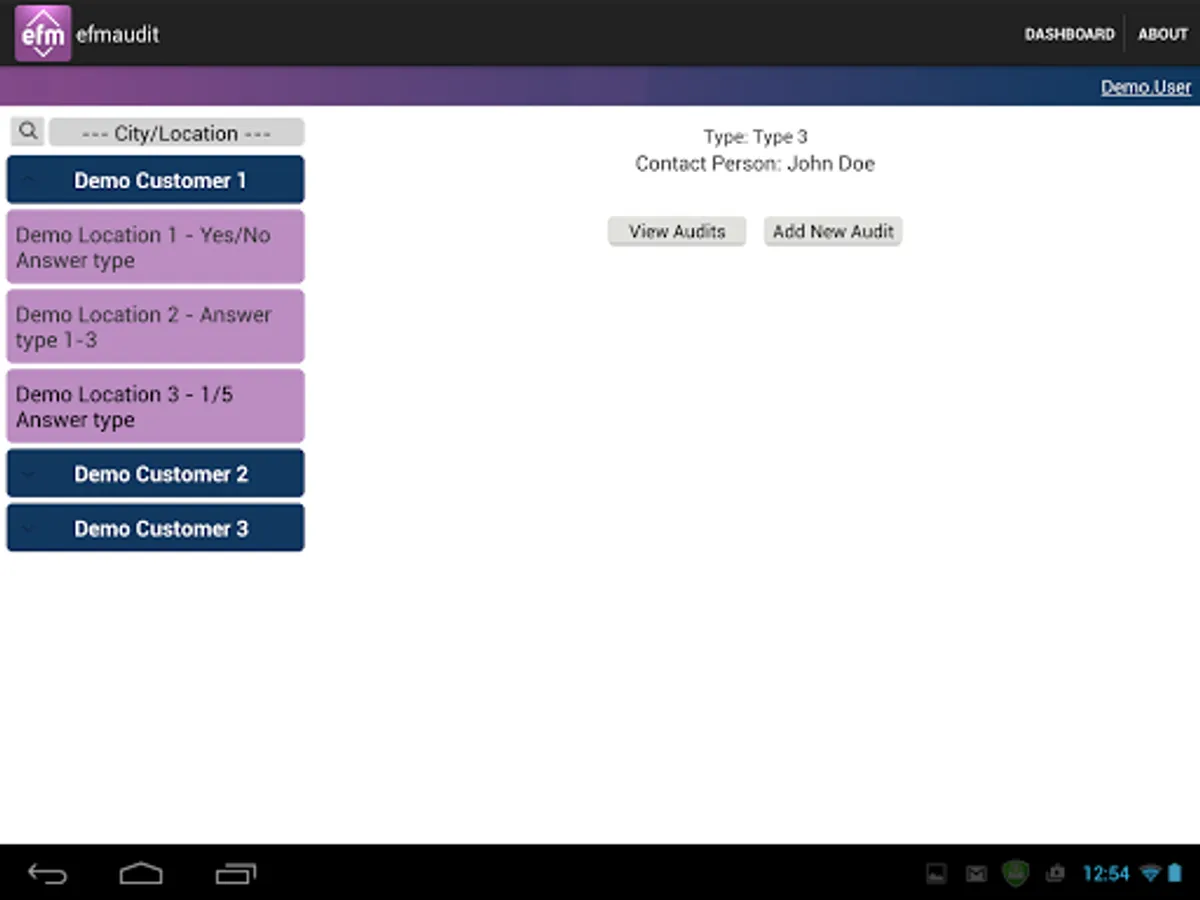 The application allows customer audits to be carried out 24/7. EfmAudit has different levels of access, allowing full task control and overview. The powerful report engine and its custom visualization is a great tool for users and its customers. The dashboard is designed to reflect the current KPI levels and analyse the data.
