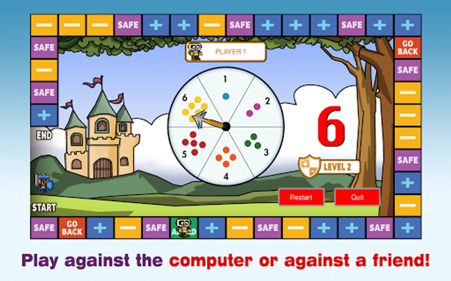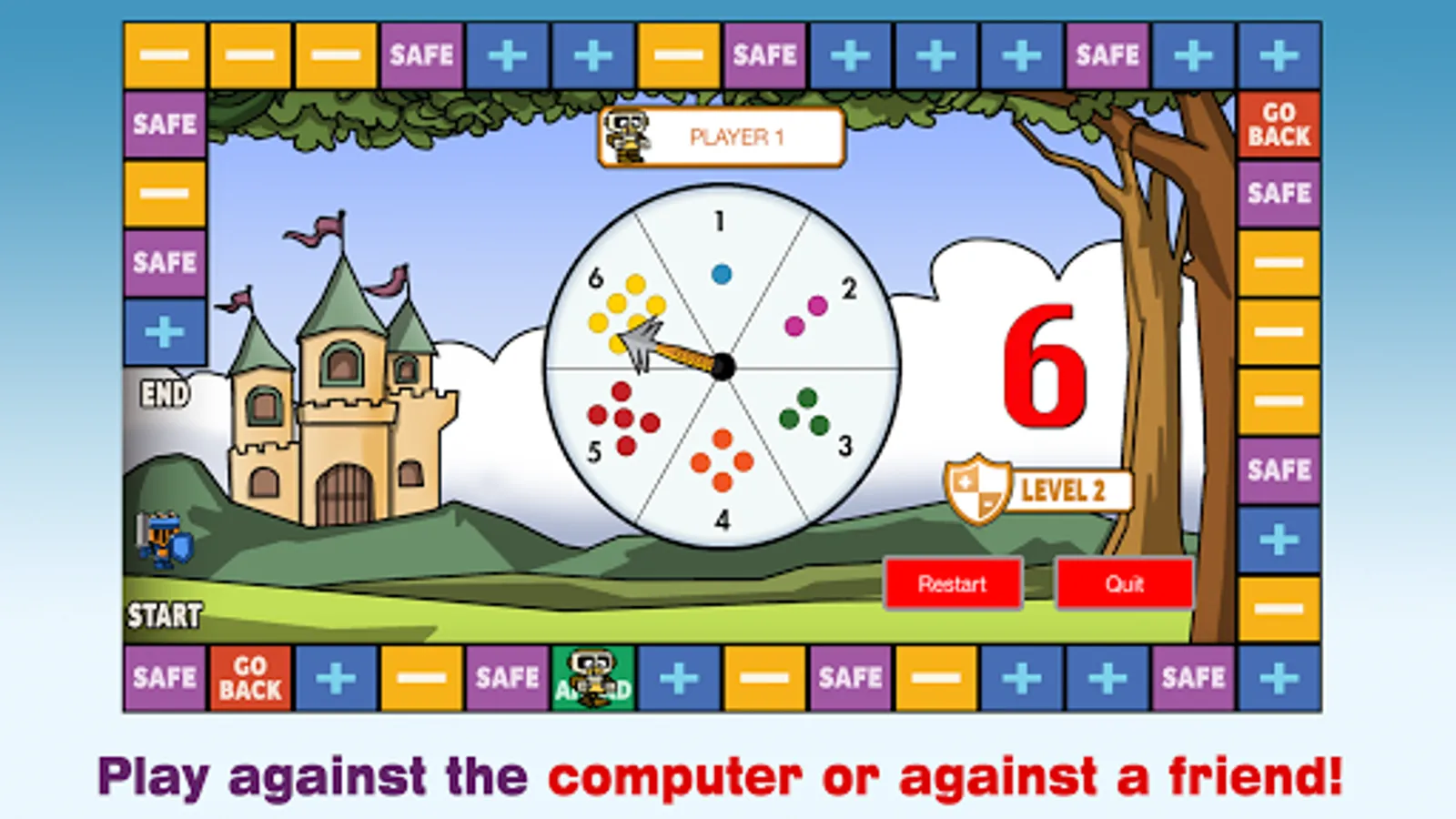 Will you become the hero of Math Kingdom? Use your Plus and Minus math skills to add and subtract across the board and answer as many addition and subtraction questions as you can! Play the game against the computer or against a friend!