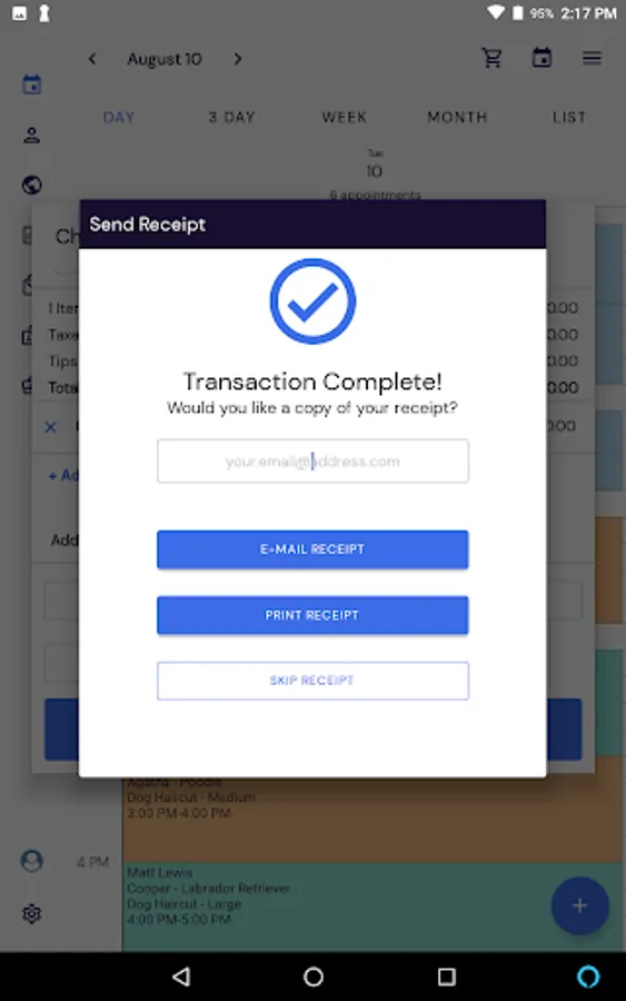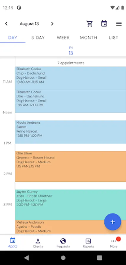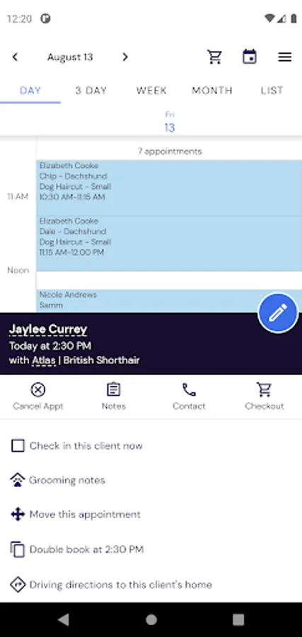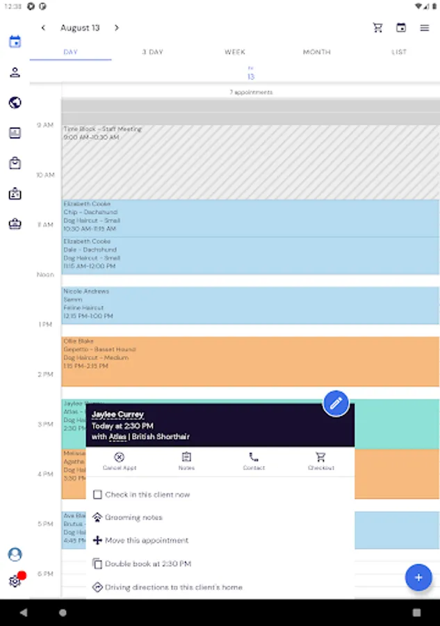 Quickly flip through days on your calendar, view and schedule appointments, and book time blocks to mark yourself off the appointment book. DaySmart Pet™ is a great grooming scheduler app for any size pet business, and pet grooming business owners and managers can even check out the appointment schedule of any of the employees at the business.