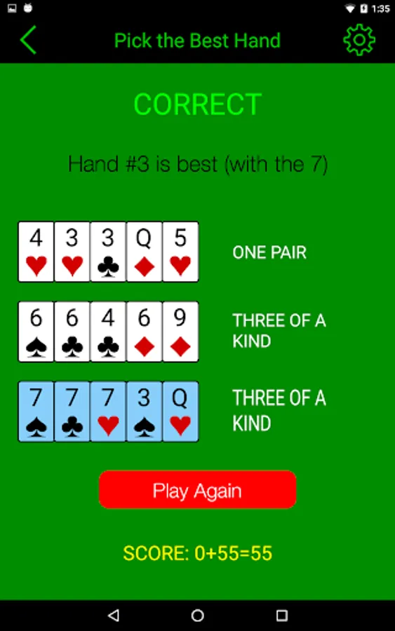 Try your hand at the classic Five-Card Draw Poker or the all-new 'Pick the Best Hand' card games, which tests your speed and skill at determining the best hand out of three. Log onto the Leaderboards to compare your Poker Nerd scores with other card players around the world! These games could be your best tutor to learn the game of poker!