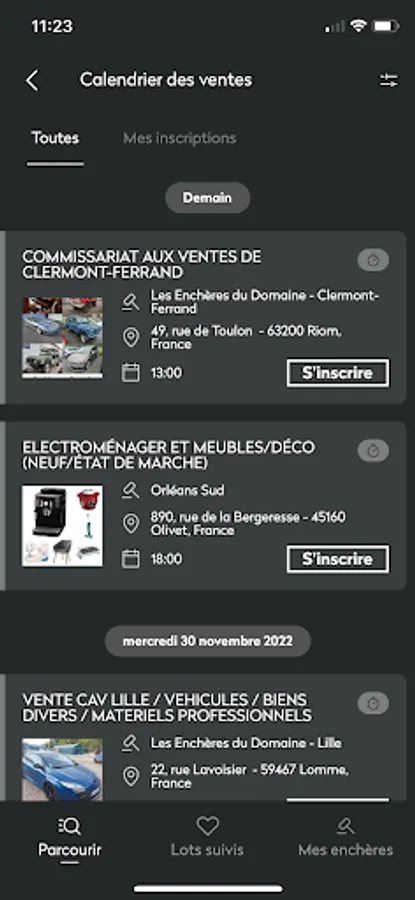 Search for an item by category or keyword, record an alert to be notified as soon as a new lot corresponding to your search goes on sale.