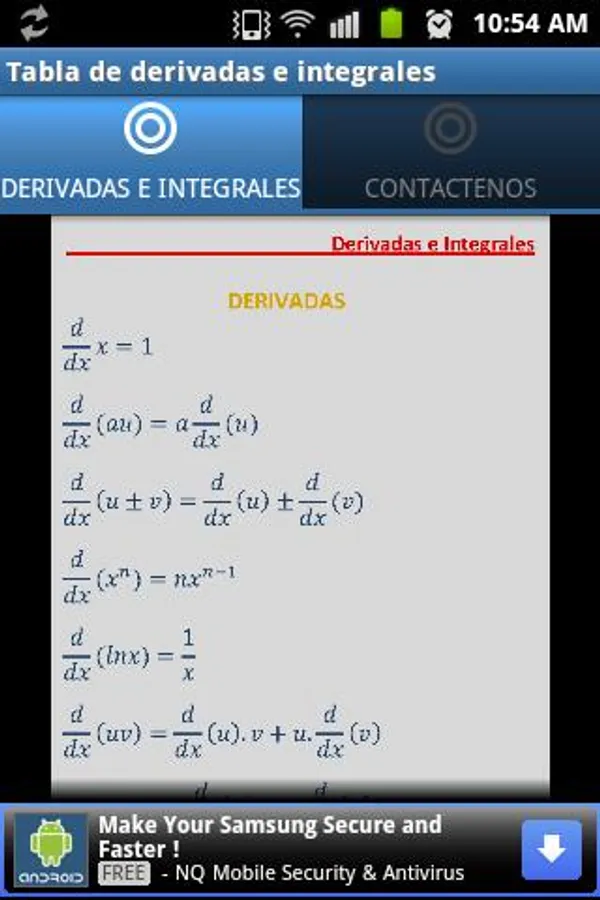 This application contains the main formulas of derivatives and integrals. With this application you can bring the table derivatives and integrals always on your mobile.