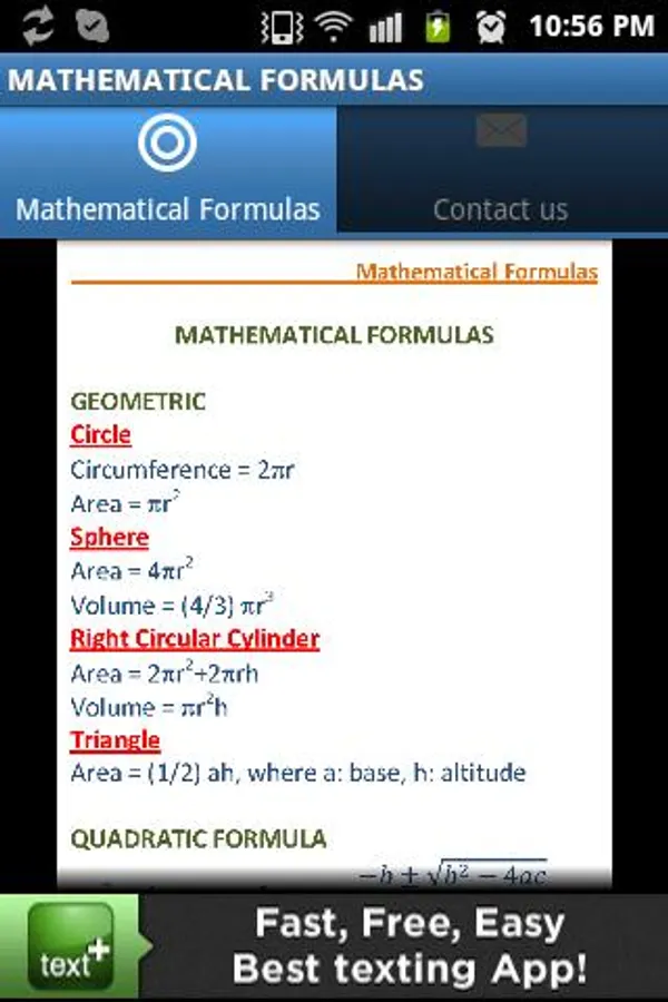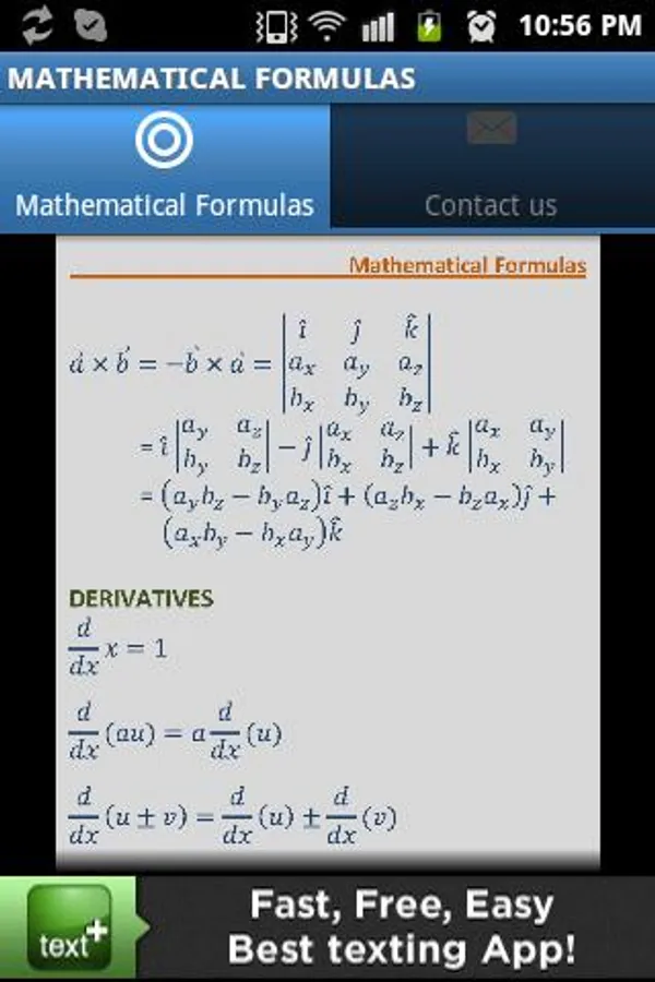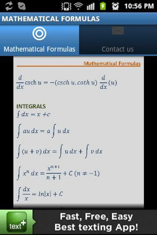 This app is a perfect tool to check out some of the most important derivatives and integrals formulas.