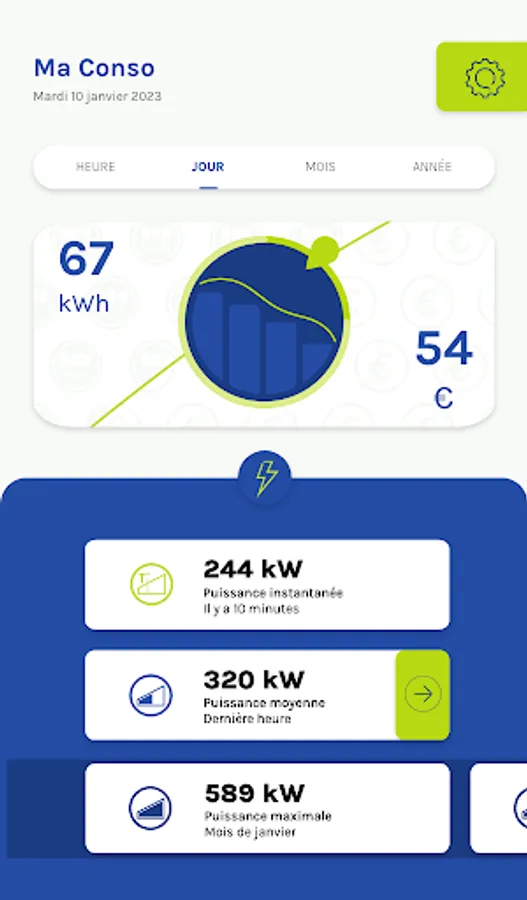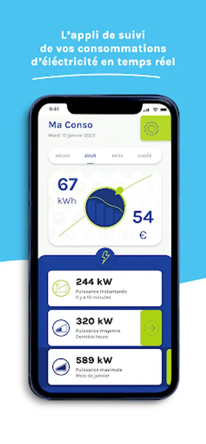 The DSI TIC app, linked to its connected object, allows you to know in real time the electricity consumption of your home. The +? You also follow the equivalent in € of your consumption.