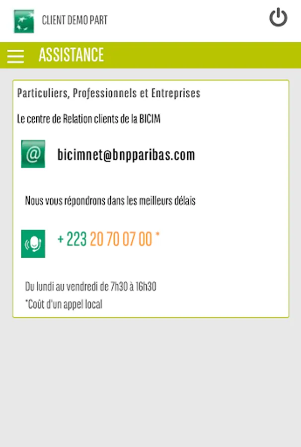 For more information, suggestions or complaints, contact the Customer Relations Centre by phone at (+223) 20 70 07 00 * or using the form available in the application.