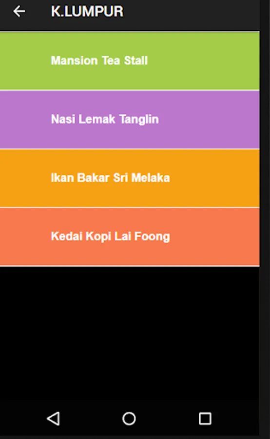 THIS APPLICATION ENABLE USER EASILY TO FIND OUT SOME OF THE MOST POPULAR FOODS AROUND MALAYSIA. THE APPLICATION IS ALREADY LINK UP WITH THE FACEBOOK AND REVIEWS SOURCES FROM TRIPADVISOR.COM AND ALSO FOURSQUARE.COM PLUS THE GOOGLE MAP DIRECTION TO THE PREFER DESTINATIONS.