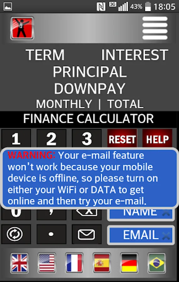 Secondly: In order to calculate your loan you will need to enter only the number of months, the simple interest rate, the principal amount and the down payment if any.