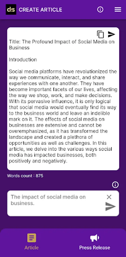 Content Creator is a mobile apps made with OpenAI API. You can create articles or press releases.