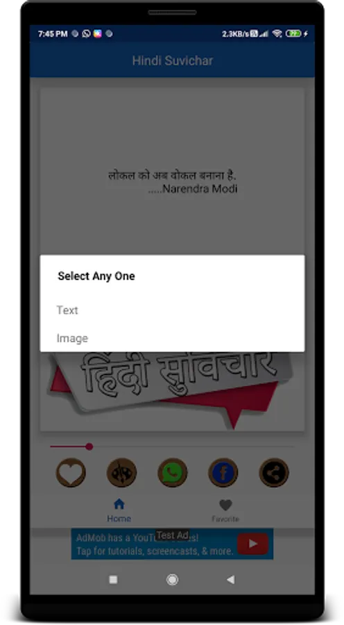 Big Collection of Hindi Suvichar. Hindi Language we call it (हिंदी सुविचार). In this application we provide quotes from well known people across the globe and teaching important life lessons. We provide Hindi Suvichar as text and also as a Image. You can also use as a Hindi Suvichar Status.