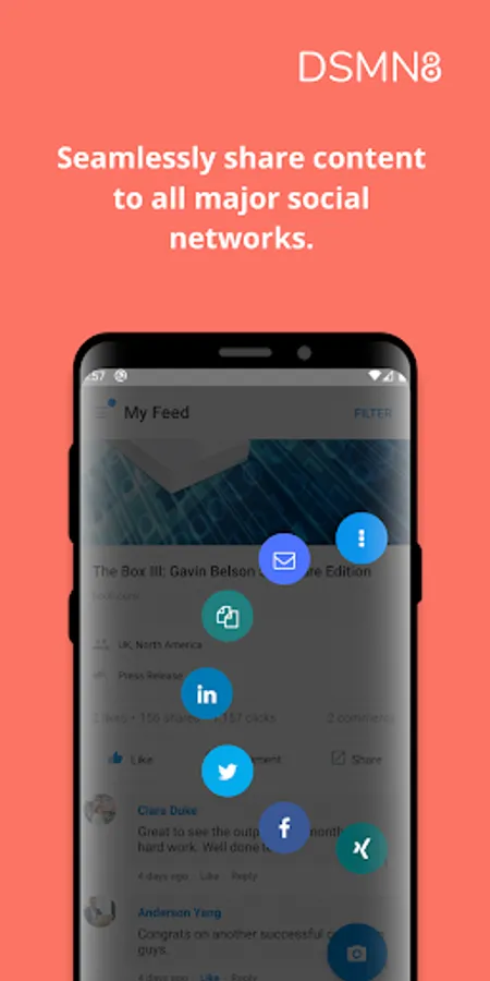 DSMN8 is a product advocacy tool used by teams when sharing content about their companies products within Social Media.