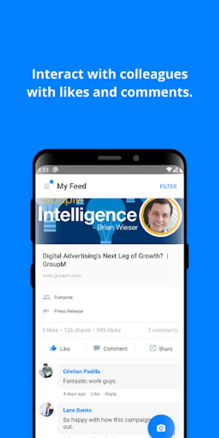3. Share company posts on their own social media channels, increasing their companies overall social presence.