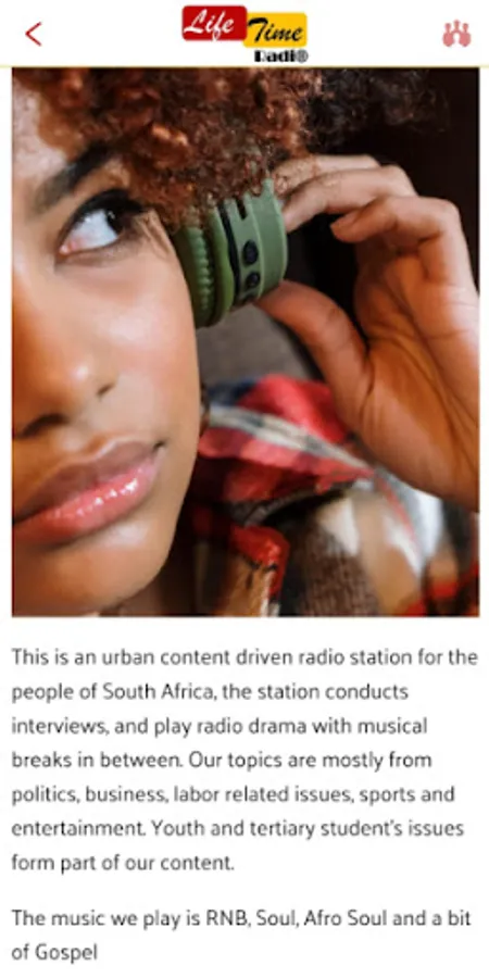 This is an urban content driven radio station for the people of South Africa, the station conducts interviews, and play radio drama with musical breaks in between. Our topics are mostly from politics, business, labor related issues, sports and entertainment. Youth and tertiary student’s issues form part of our content.