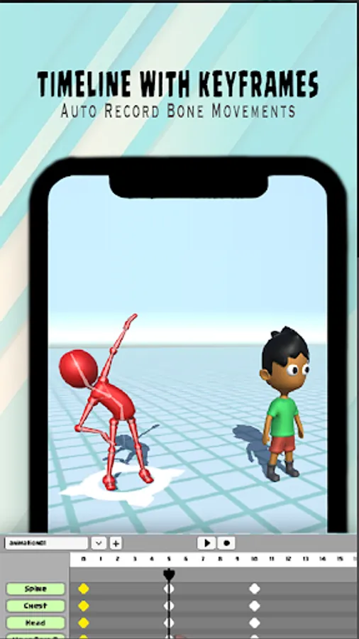 * Keyframe animation Based Timeline with automatically record bone transform and rotations.