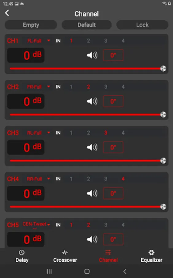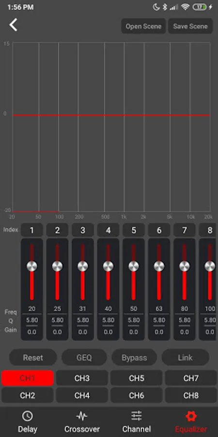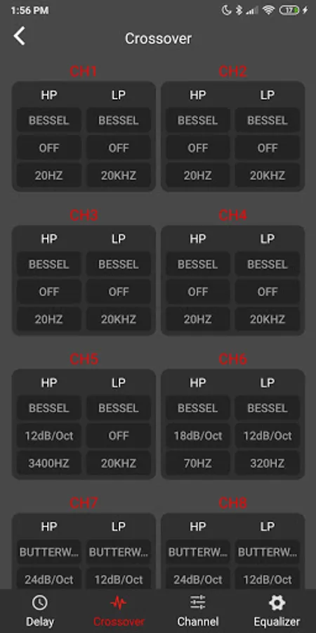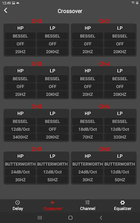 Remote control app for BLAM 6 input to 8 output digital audio processor LSP68