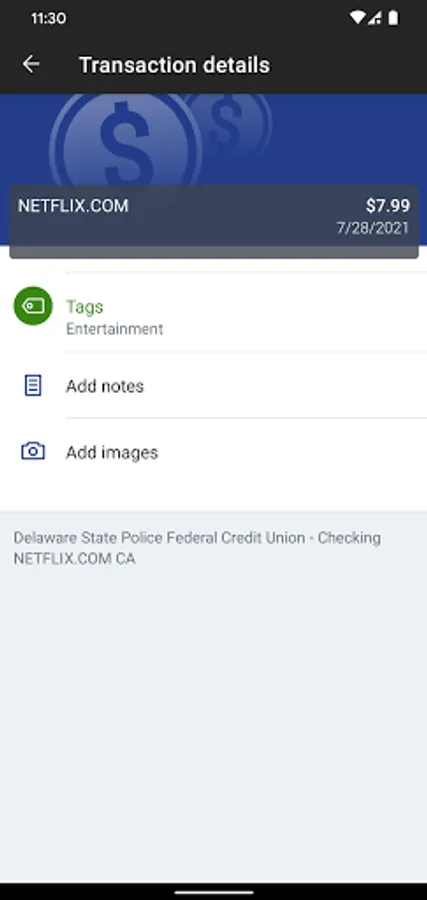 Keep your transactions organized by allowing you to add tags, notes and photos of receipts and checks.