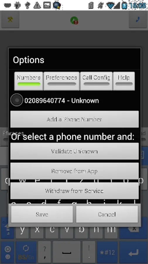 • In the Options page, add your full UK telephone number (e.g. 0791…)