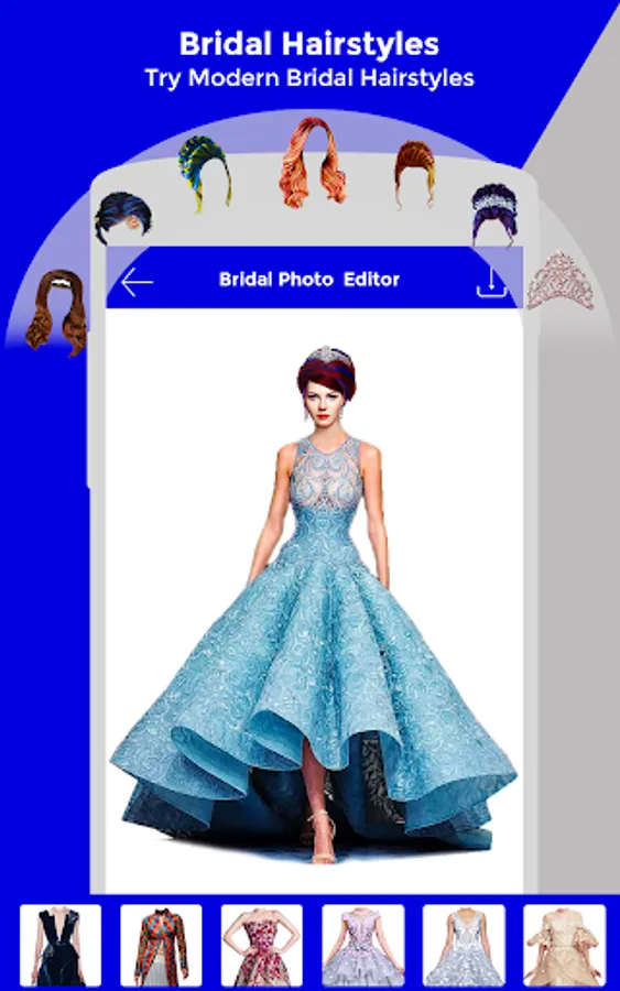 want to updo your hairstyle so try updo hairstyles for weddings app that allows you to edit hairstyles for weddings for short hair and long hair both.Even you can check how your bride hairstyles look with veils.