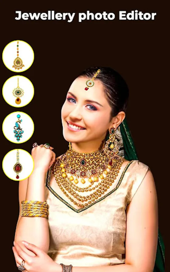 Jeweller - Is a Jewellery Photo Editor and Women Beauty app designed for Jewellery Lovers and getting married soon girls.In Jeweller app they can see their perfect traditional look by trying the Traditional suits, Necklace, Ear rings, Tikka, Bindhi, Hairstyles and also beautify their faces with our makeup tools like face toner,blemish remover, foundation and hair color changer. Also with our powerful Photo editor they can try different photo effects and photo filters on them. With our Sticker Editor tool they can add Stickers to their beautiful pictures.With our text Editor they can quote their own messages and text in colorful Fonts.