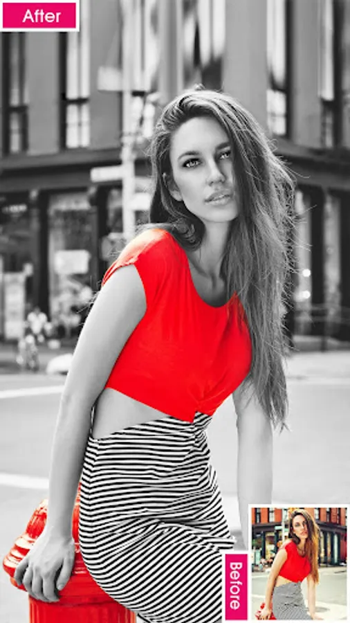 Who don't like black and white color splash?,Everyone fall in love with greyscale photos. So take a photo from gallery or take a selfie from our Selfie camera option of this photo editor, draw on the image which you want to apply splash or greyscale effect and click on done button, In single click apply the greyscale effect on the photo. Add a splash of color to your photography with this colorful pics art.Try photo editing effects, Photo Color Effect, Bokeh Effect and adjust photo with a visual histogram in this photo editing app and photoshop your photo in one touch.Try funny photo editing in our funny photo editor by adding funny stickers.Create fashion frames in fashion photo editor by Editing images in this High quality photo editor.