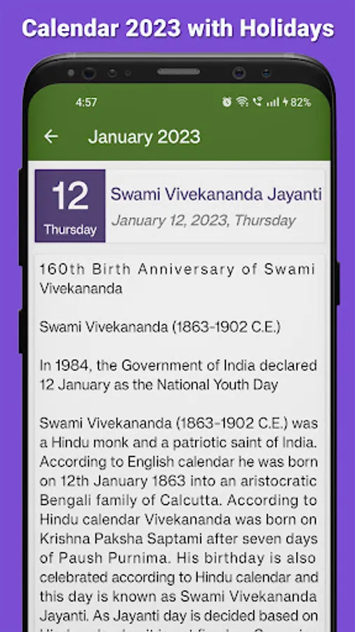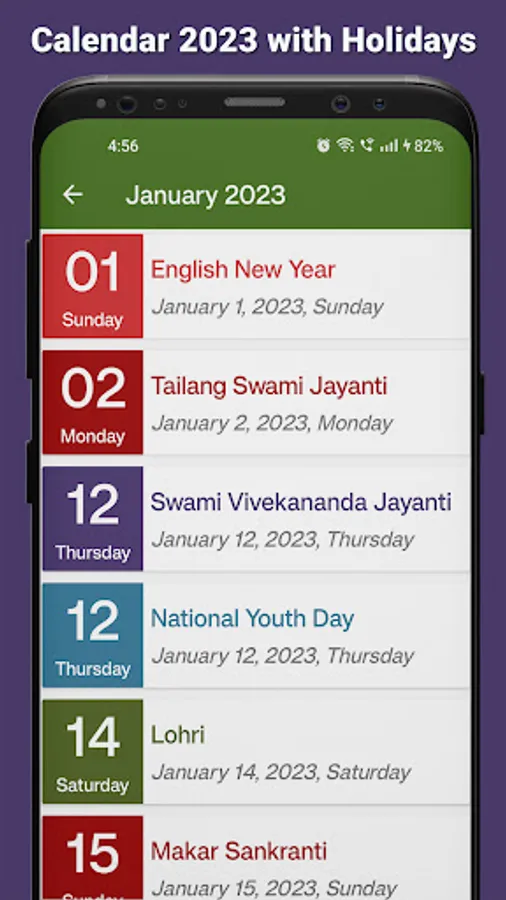 Hindi Calendar 2023 with Information like Holidays, Festivals and many more...