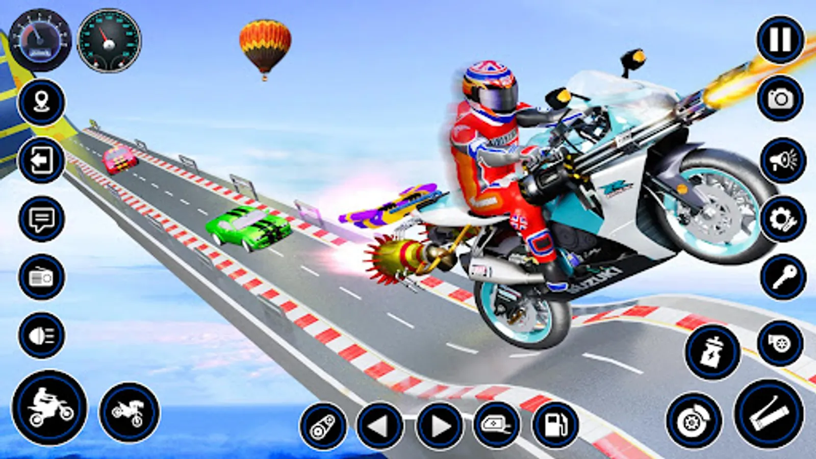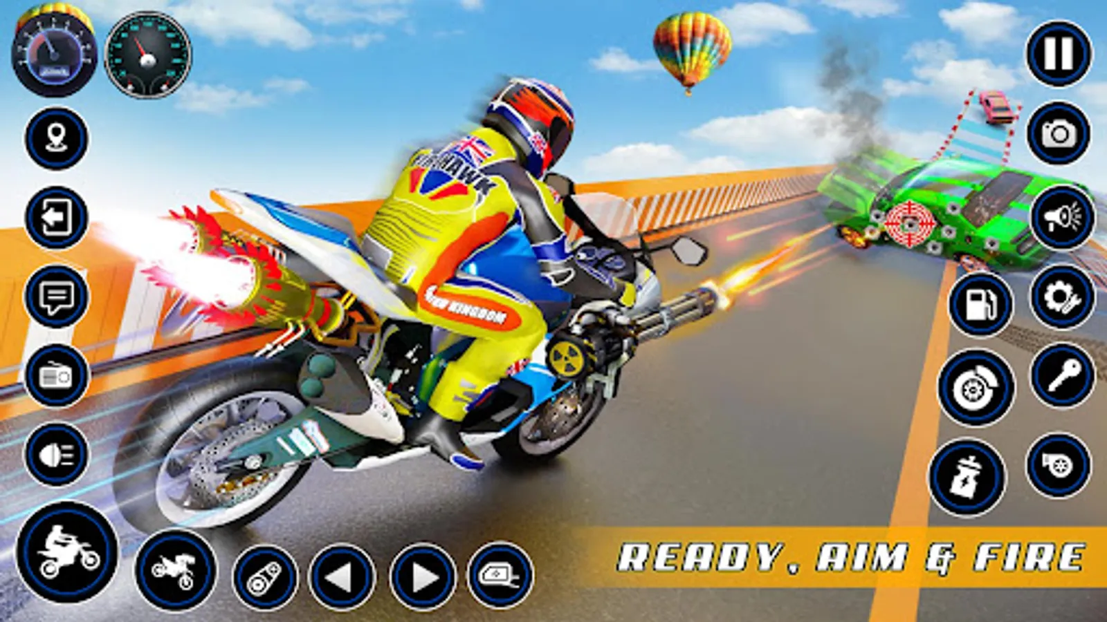 Use guns and speedy jets to perform bike stunts