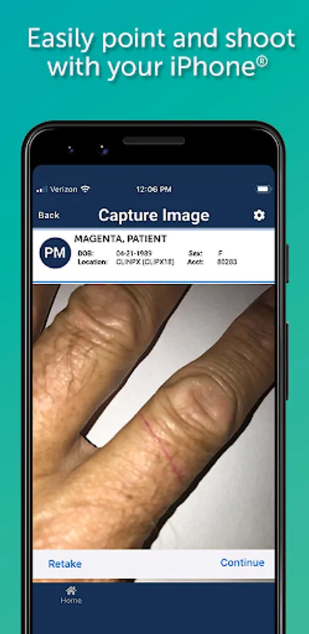 Clinical Pictures for iPhone® enables a provider to quickly locate their patient and snap a picture of the patient’s area of care. These photos are securely sent to Juno EHR for further documentation. Clinical Pictures provides the following functions: