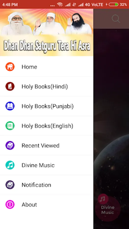 MSG Shabad-Vani is an app incorporating the holy literature/books & divine music by Reverend Spiritual Master of Dera Sacha Sauda, Saint Dr. Gurmeet Ram Rahim Singh Ji Insan. The mysteries of spirituality are unveiled to satiate the soul's longing to meet its beloved Master, Lord, Almighty through these precious collection of books. This treasure encapsulated in an app, has its sole focus on spirituality and the spiritual quest of a soul, irrespective of any caste, religion or creed. His Holiness have explained the progress that a soul can make to reach the highest pinnacle, while on a spiritual quest towards God and Godliness. One can easily get information about the hidden gems of spirituality through these extremely priceless gifts by His Holiness. Saints are messengers that incarnate to convey the messages of God through various divine experiences. The literature and the songs expresses every essence of the messages conveyed by the Masters themselves. Dive into the deep sea of spirituality and master the art of sailing in this World, that encapsulates infinite secrets of the Universe and see the secrets being unfolded through this priceless compilation!