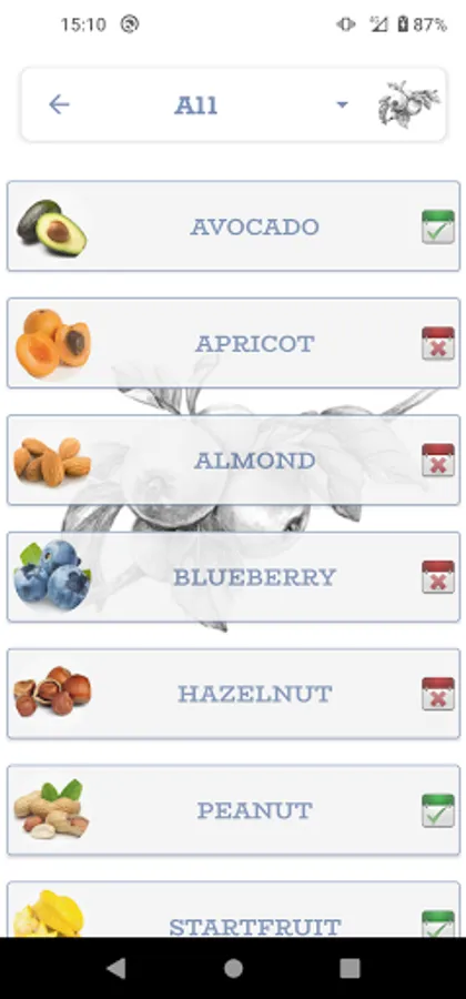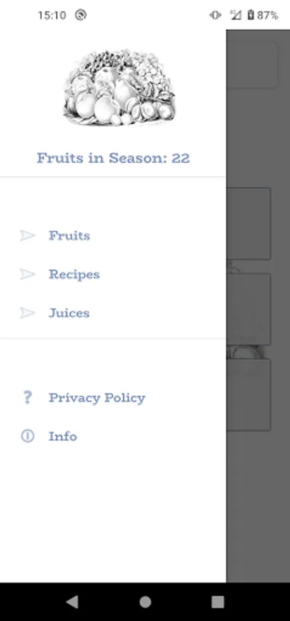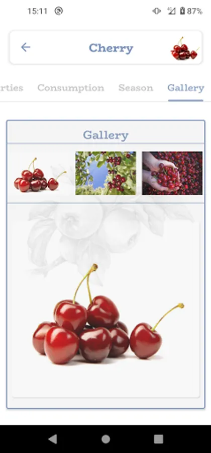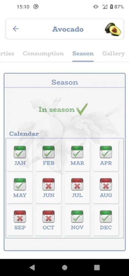 The App includes for each fruit, information about its Characteristics, Properties, Consumption, its period of season and various photos.
