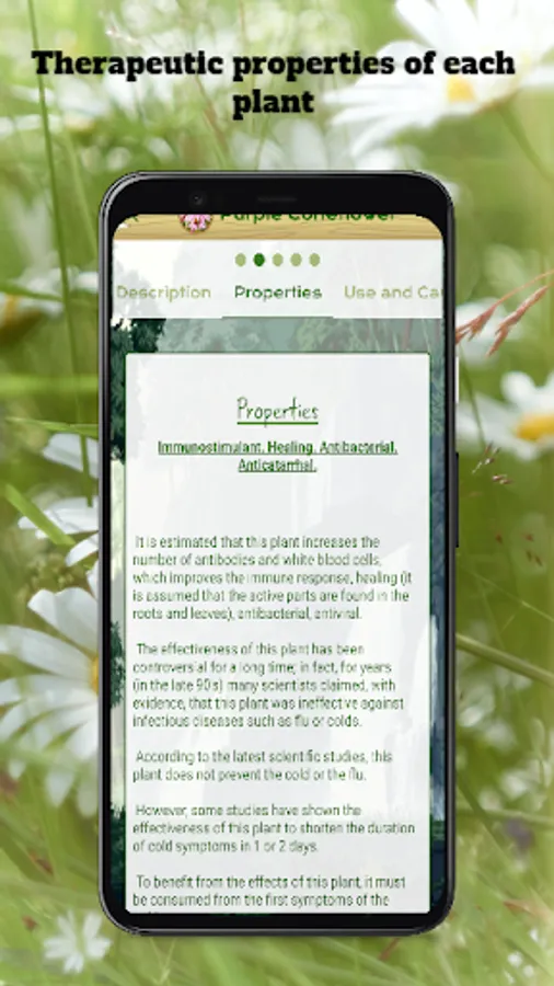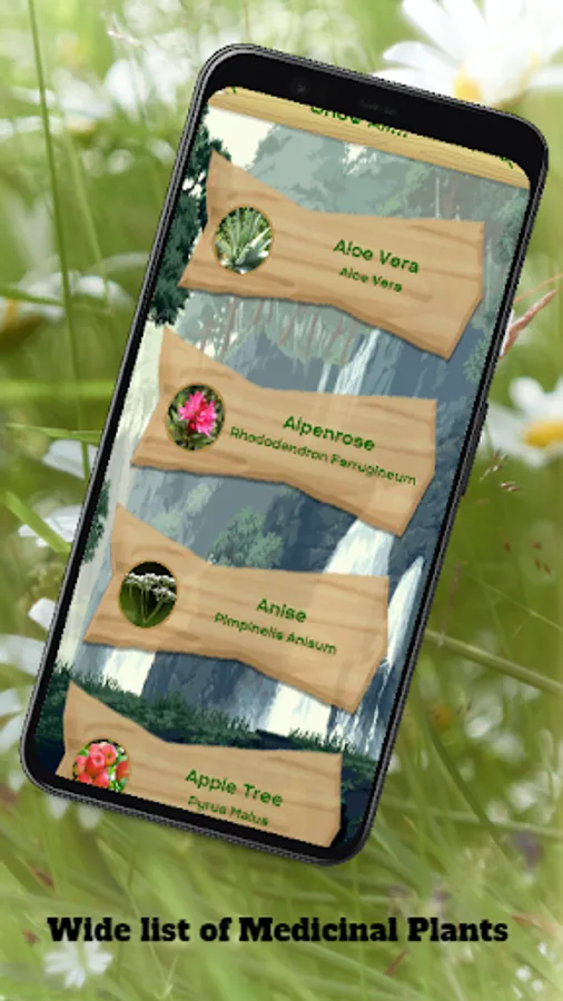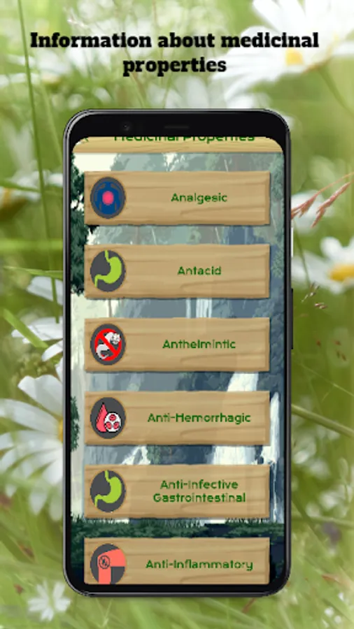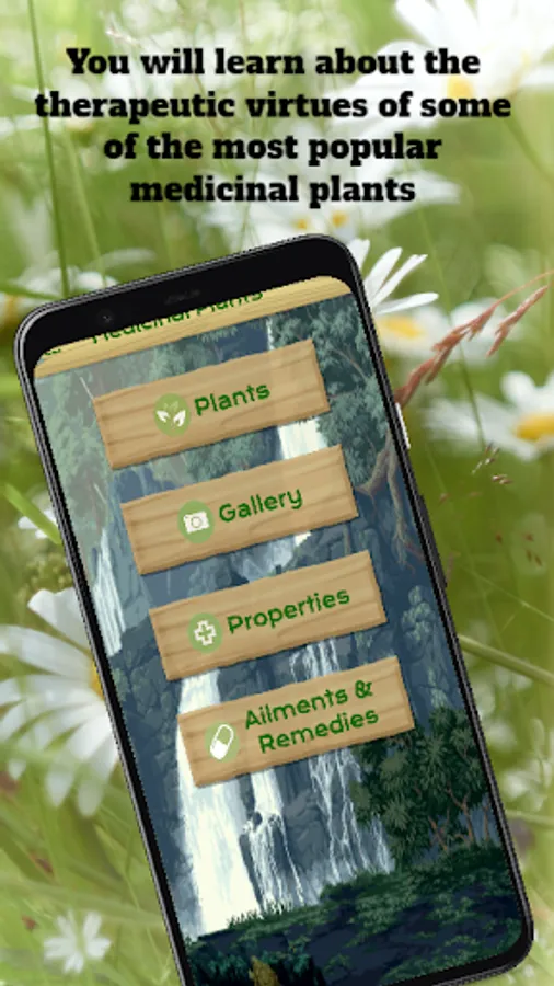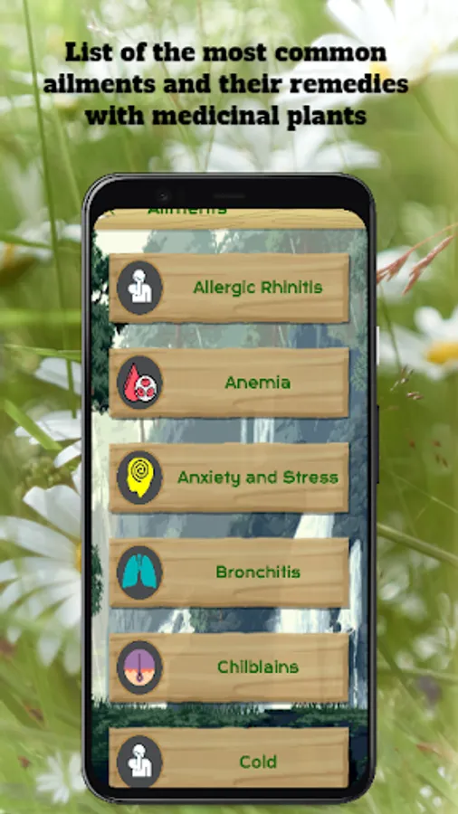 The app includes a list of the most common ailments and their remedies with medicinal plants.