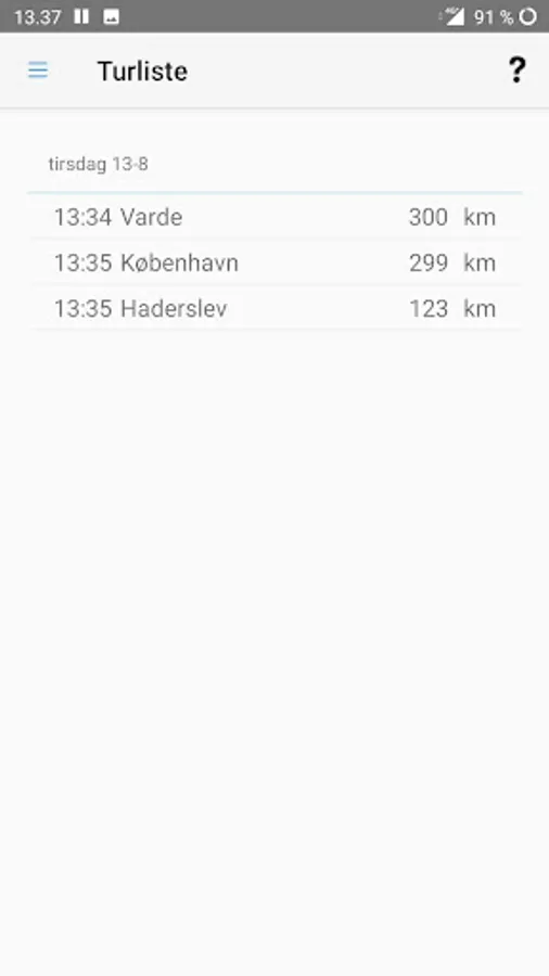 At the end of the week you select Quit and report in the menu and send your registered trips to Statistics Denmark.
