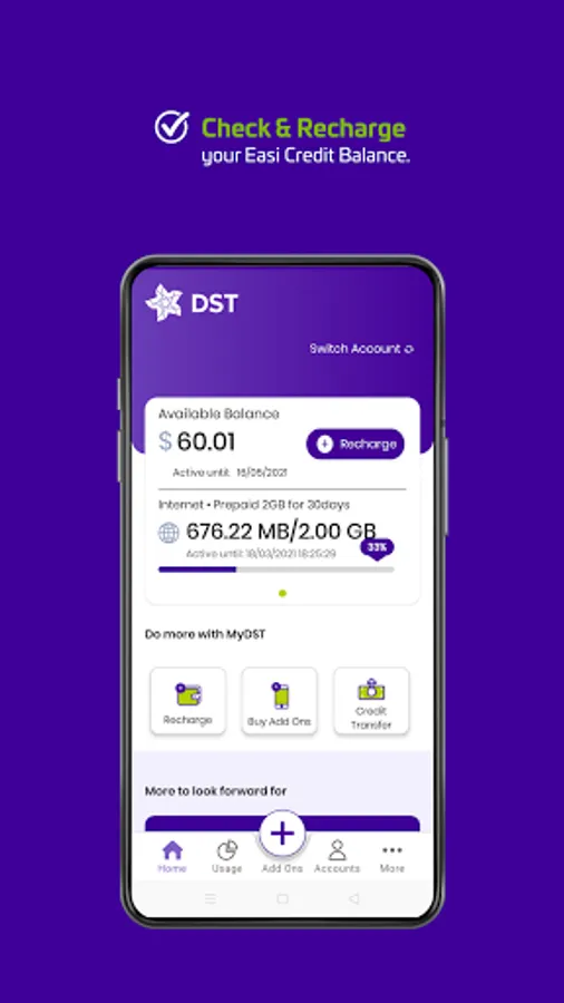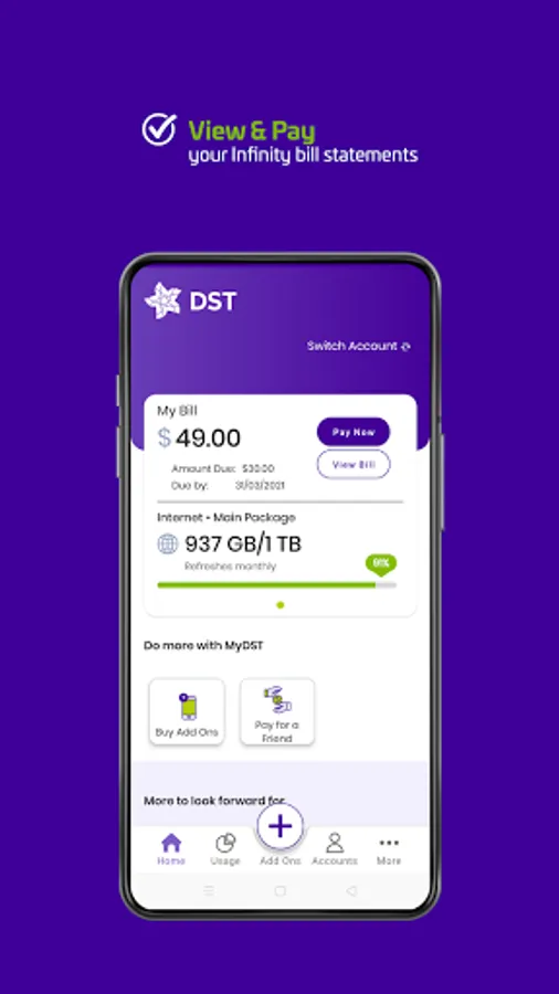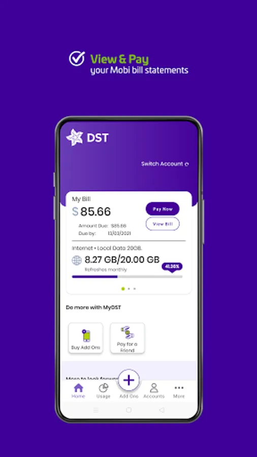 The MyDST App is a convenient and smarter way for you to manage all your DST accounts for Easi, Mobi, Freedom and Infinity. Providing an experience for you to have everything within the reach of your fingertips.