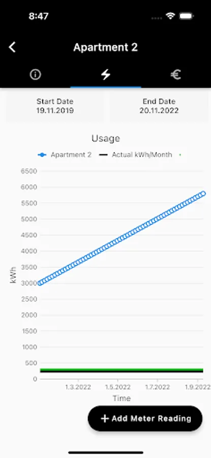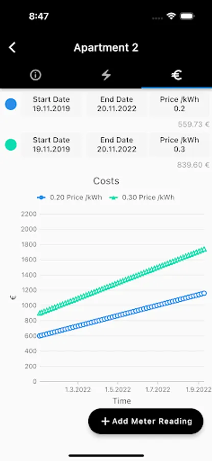 With rising energy prices, it makes sense to keep an eye on costs at all times. Add new meter readings into the app on a regular basis and see how your energy consumption and costs are developing over time.