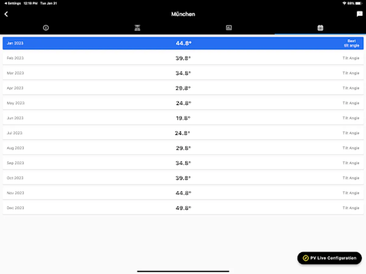 Calculate the optimum year-round and monthly tilt angle for your pv system in your location and get maximum electricity for your individual installations.