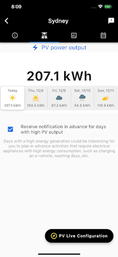 Receive forecasts on electricity generation based on weather data to identify high power days.