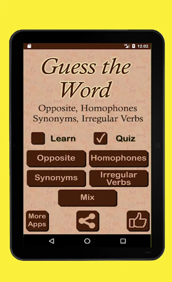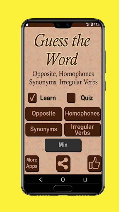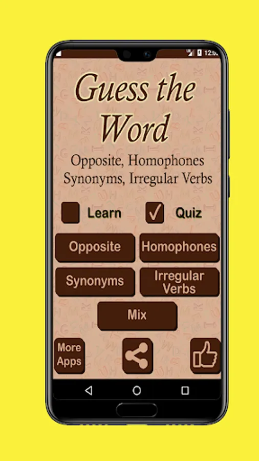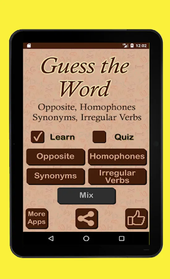 Guess the word – Grammar Learning contains Opposite, Synonyms, Homophones, Irregular words and mixture of all of the above.